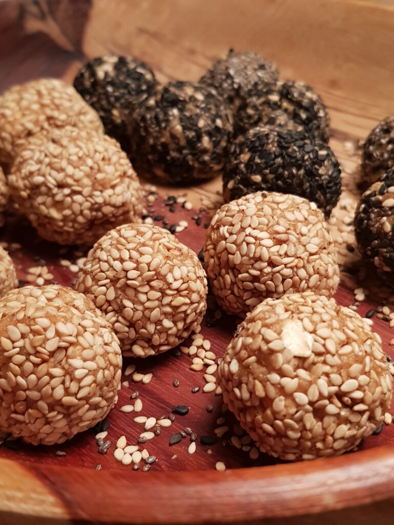 Voor als je verantwoord wil snacken of wanneer je moeite hebt met het aankomen van spiermassa. In deze sesam-pinda balletjes zit natuurlijk veel eiwitten, maar ze zitten ook vol IJzer, Magnesium, Zink, Koper en vezels. Waardoor ze erg goed in het dieet van een (kracht) sporter passen.