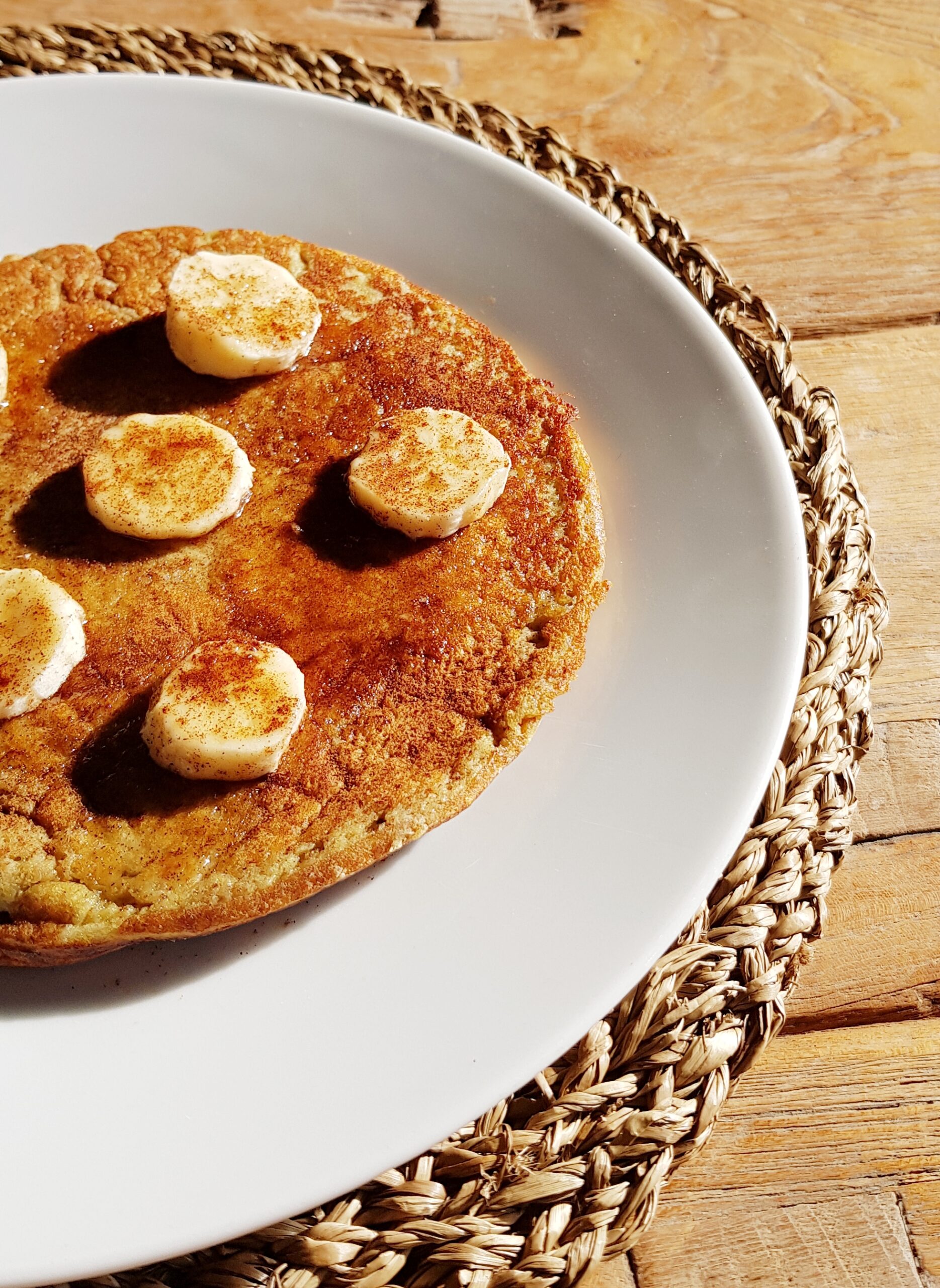 Deze zeer eiwitrijke pannenkoek (41gr) is perfect voor mensen die gewicht willen verliezen. Dit gerecht vult niet alleen goed, het smaakt ook nog naar cake. Een win-win gerecht, zeker wanneer je op dieet staat.