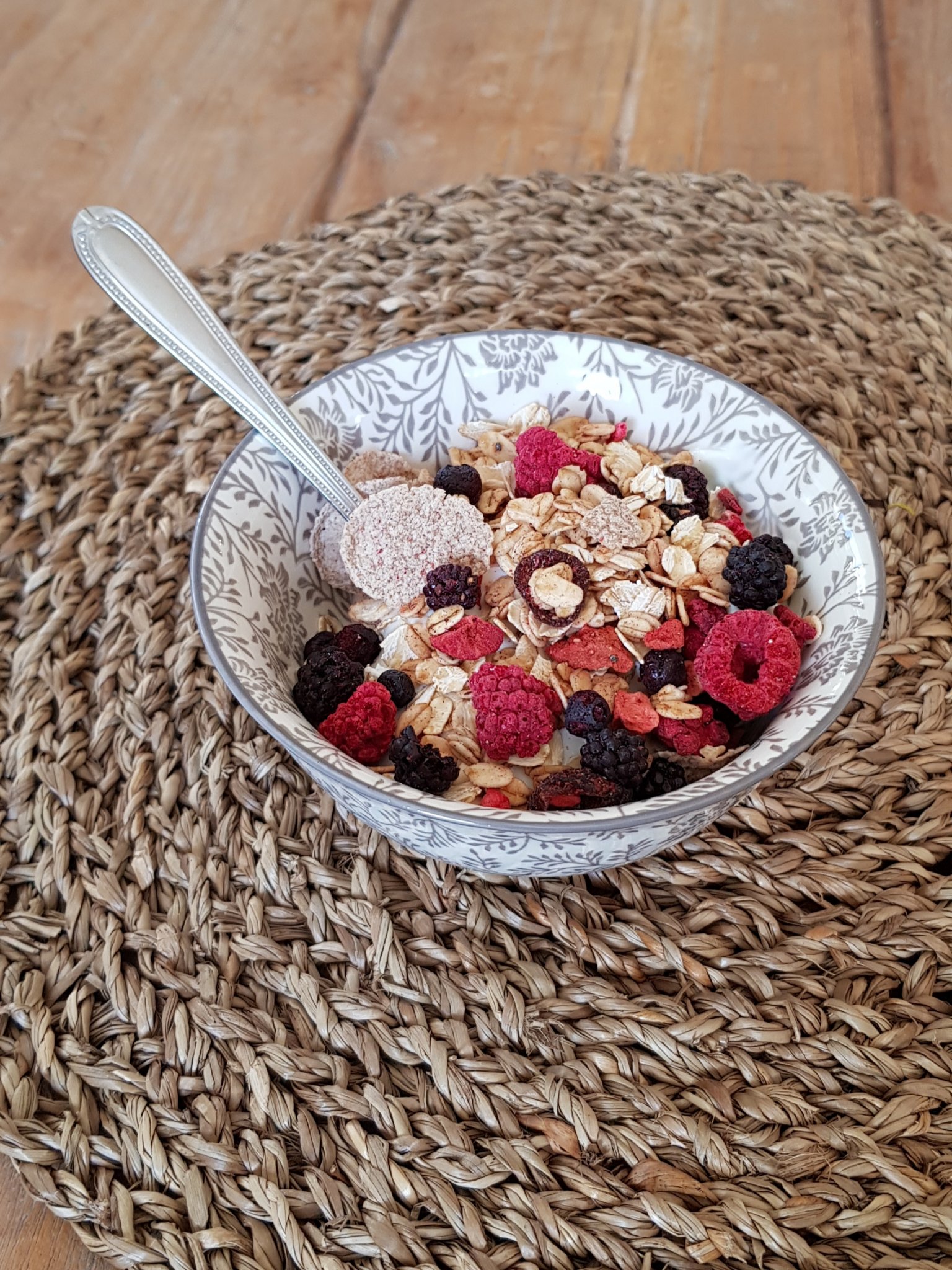 Kijk wanneer je granola koopt wel even op de verpakking, met name naar het vetgehalte. Zo is die van Mymuesli (9gr per 100gr) en Zonnatura veel lager in vet (11gr per 100gr) dan bijvoorbeeld Dorset Cereal met 25gr per 100gr. In dat laatste geval zou je dan nog beter een McDonalds hamburger of wokkels voor ontbijt kunnen eten.