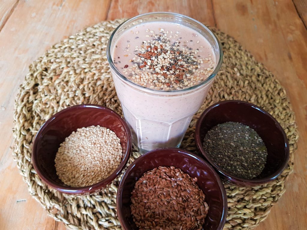 Deze snel gemaakte smoothie van 174 kcal vol eiwitten, vezels en mineralen zorgt dat je de aankomende uren wel even vol zit.