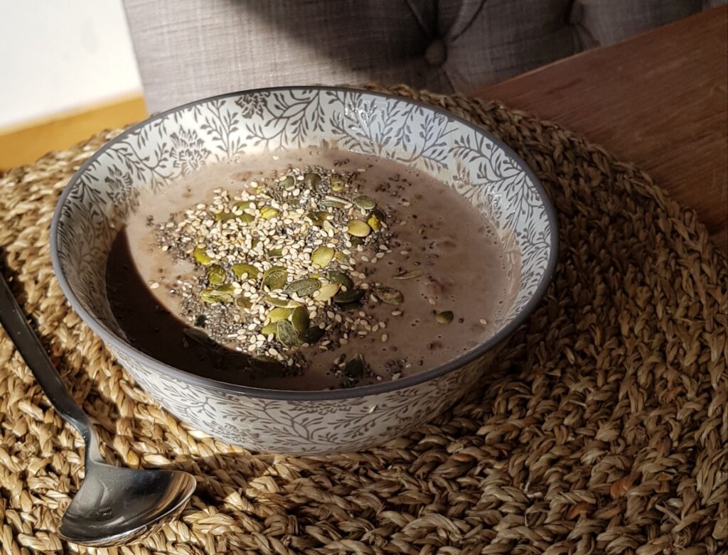 Begin de dag met een lekkere vezelrijke en voedzame pap van 370 kcal. Door de vele eiwitten en vezels geeft deze pap je voor lange tijd een gevuld gevoel.